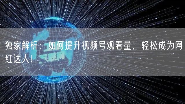 通过优化视频内容创作和推广策略,结合数据分析与优化,您可以有效提升视频号的观看量,轻松成为网红达人。让我们一起努力,实现自己的网红梦想!