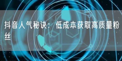 通过本文的介绍,相信你已经了解了如何在抖音上低成本获取高质量粉丝。掌握抖音人气秘诀,结合有效的营销策略,不断提升自己的影响力。同时,要注重与粉丝的互动和沟通,维护良好的关系。最后提醒一点:内容的质量和特色是吸引粉丝的关键只有持续输出优质内容才能吸引更多高质量粉丝的关注和支持。