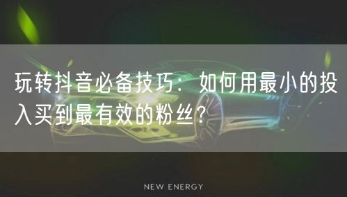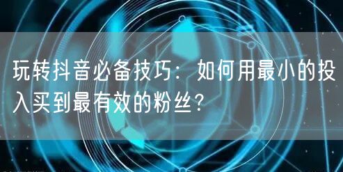 随着抖音平台的日益火爆,越来越多的人希望在这个平台上获取粉丝,实现个人品牌的推广。但是,如何在有限的投入下获取最有效的粉丝呢?本文将为您揭示玩转抖音的必备技巧。