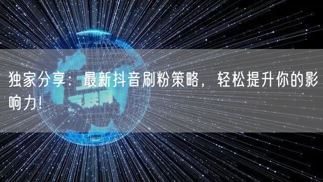 以上就是本文为大家分享的独家最新抖音刷粉策略。希望通过这些策略,能帮助你在抖音平台上轻松提升影响力。当然,刷粉只是一个过程,最重要的是创作出优质的内容,与粉丝保持良好的关系,才能在抖音上长久发展。