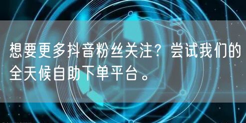你是否在寻找一种有效的方法来增加你的抖音粉丝数量?如果你希望吸引更多的关注者并扩大你的影响力,那么我们的全天候自助下单平台可能是你的理想选择。