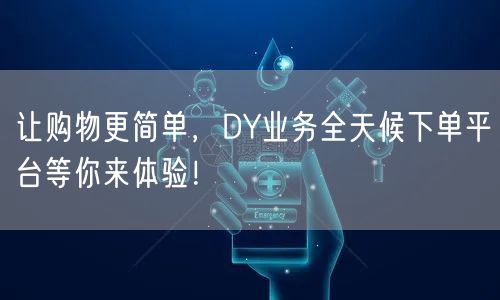 在这个快节奏的时代,购物需要变得更简单,更方便。我们推出全新的DY业务全天候下单平台,为您带来全新的购物体验!