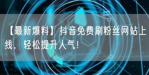 近期,一个令人振奋的消息在社交媒体圈引起了广泛关注——抖音免费刷粉丝网站正式上线了!这对于众多渴望提升人气、扩大影响力的抖音用户来说,无疑是一场福音。